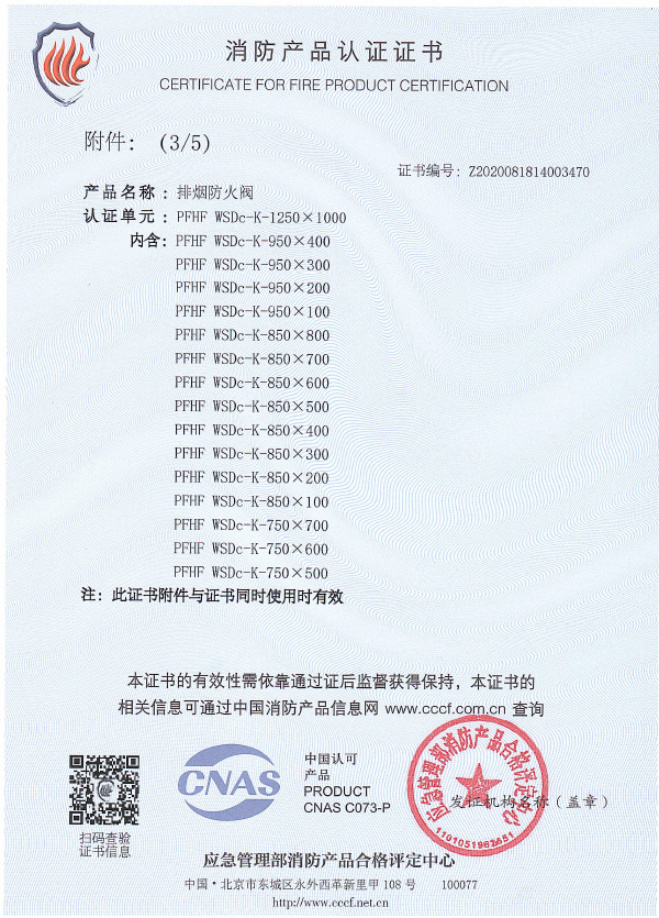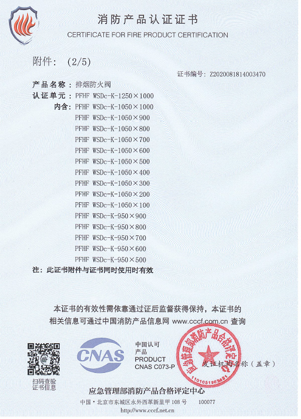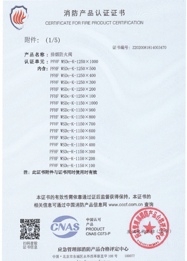 排煙防火閥認(rèn)證證書(shū)1250X1000